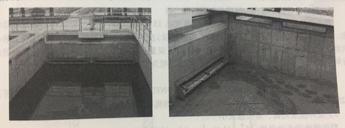 翻板閥濾池的配水系統(tǒng)屬于中(小)阻力配水系統(tǒng),采用獨(dú)特的上下雙層配氣配水層形 式,由橫向配水管、豎向配水管和豎向配氣管組成。這種獨(dú)特的結(jié)構(gòu)特點(diǎn)使得翻板閥濾池獲 得較其它類型濾池更均勻的配水配氣性能。 翻板閥濾池的反沖洗方式也與其它類型氣水反沖洗濾池不同,翻板閥濾池采用閉閥沖洗 方式,沖洗過程分為氣沖+氣水聯(lián)沖+水沖、單獨(dú)水沖兩大階段,無論水沖、氣沖時(shí)都不 向外排水,一個(gè)反沖洗階段結(jié)束后,靜止數(shù)十秒后再排水。因此翻板閥濾池基本不會(huì)出現(xiàn)濾料流失現(xiàn)象。